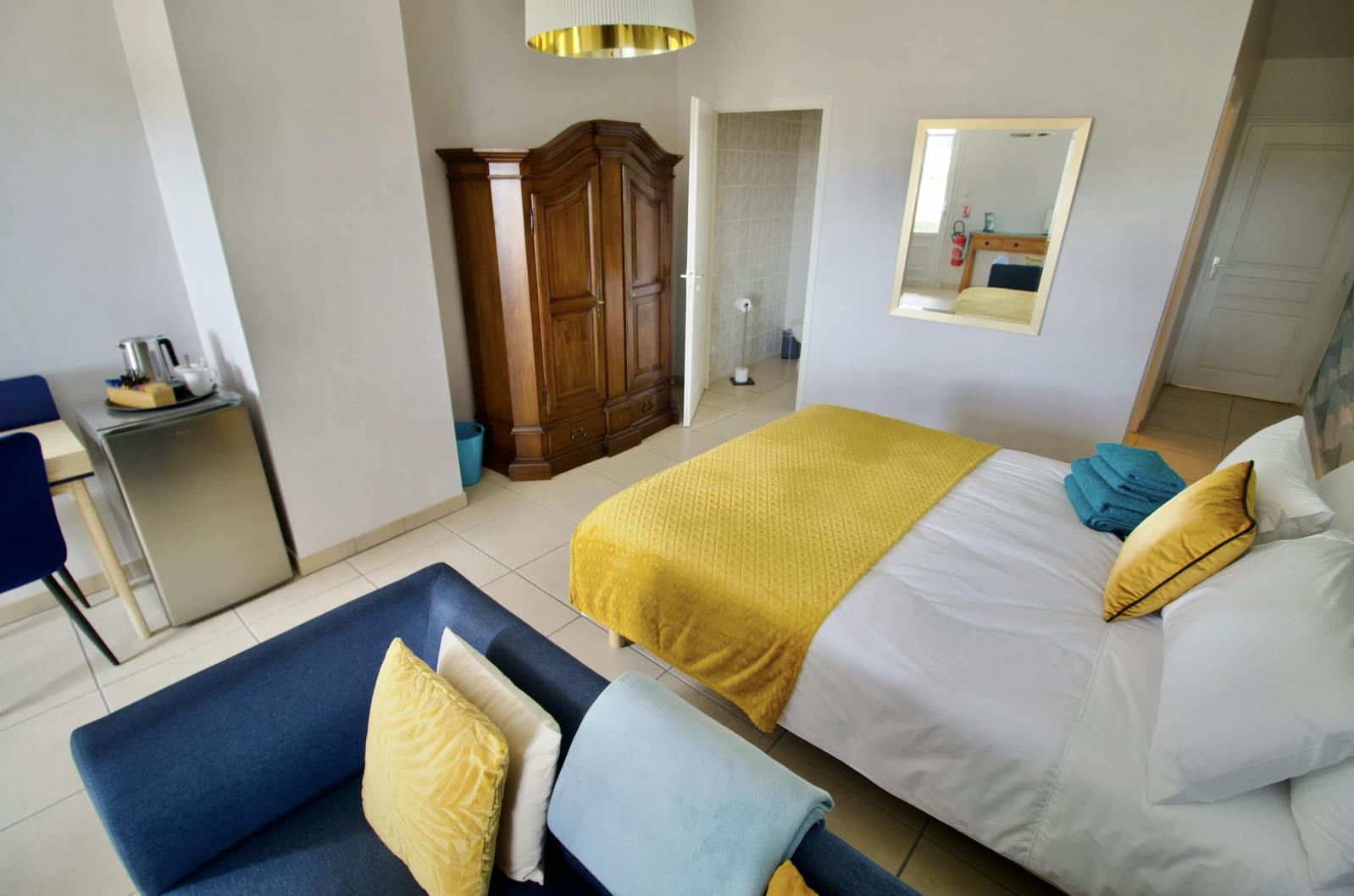 Picholine is on the first floor of the main house with access via an external staircase. It is a large room with a very comfortable 'coin salon' along with a large double bed. It has an en suite shower room and toilet and enjoys views over the surrounding countryside. Guests are welcome to use the outdoor seating areas to eat and relax and it is suitable for one or two guests.
